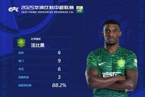 官方:法比奥当选中超第30轮最佳球员,大四喜助国安大胜收官