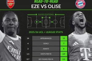 全文摘要:欧冠榜首大战在即,前水晶宫队友奥利塞(拜仁)与埃泽(阿森纳)状态火热。whoscored数据显示,奥利塞15场贡献7球8助攻,场均关键传球、过人等数据均优于埃泽,评分更高,是拜仁进攻的重要武器。