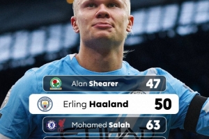 在曼城3-0曼联的比赛中,哈兰德梅开二度,完成英超主场50球里程碑。英超历史上,只有希勒主场50球的效率更高。