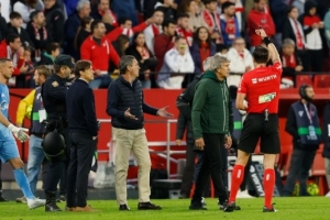 马卡:塞维利亚德比战有球迷向场内投掷水瓶,导致比赛中断数分钟