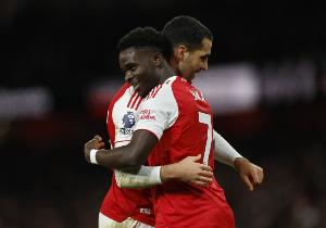梅里诺在阿森纳2-0战胜布伦特福德比赛里传射建功。