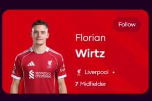体育资讯12月07日讯 本轮英超,利物浦3-3战平利兹联,此役过后,维尔茨已经14场英超0球0助攻。