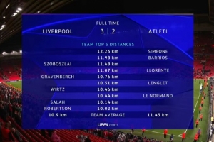 全文摘要:欧冠首轮利物浦3-2胜马竞。马竞小将朱利亚诺-西蒙尼以12.23公里成为全场跑动距离最多的球员,领跑两队跑动榜。利物浦方面,索博斯洛伊以11.68公里位居队内第一。