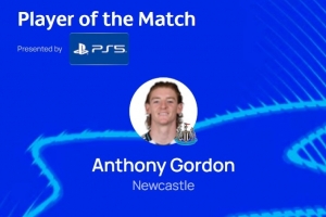 戈登此役传射建功,当选欧冠官方全场最佳球员。