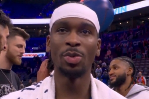 体育资讯12月11日讯 NBA杯1/4决赛,雷霆138-89大胜太阳晋级。赛后亚历山大接受了采访。