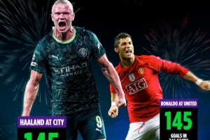 据beinsport数据统计,哈兰德如今已经在曼城打进的进球数追平了C罗在曼联时期的总进球数,而且他所用的比赛场次不到罗纳尔多的一半!