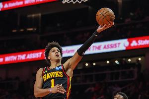 上半场,老鹰球员杰伦·约翰逊表现不错,场上依旧全能,在18分钟的时间里,投篮9中3,三分球2中1,拿到7分5篮板8助攻的数据。