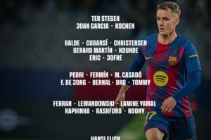 前锋:费兰·托雷斯、莱万、亚马尔、拉菲尼亚、拉什福德、鲁尼·巴德吉