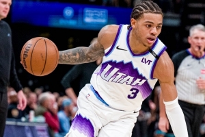 上半场比拼,双方飙分大战,而爵士队的基昂特-乔治则独撑爵士进攻。他出场18分14秒,14投8中,三分6投3中、罚球5中5,拿到24分2篮板4助攻,正负值-6。