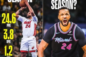 鲍威尔本赛季场均24.6分3.8篮板1.2抢断,三分命中率43.6%;目前热火14胜12负,排名东部第八。