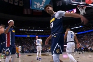 GIF-贝恩强突上篮被卡梅隆·约翰逊压哨钉板