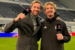 全文摘要:英超赛后,纽卡前锋沃尔特马德与传奇克劳奇同框。沃尔特马德因身高外貌被德国老队友戏称“克劳奇”,他调侃“我们都帅”。克劳奇则亲切回应“我儿子”,笑称其为“真帅”,尽显幽默风趣。