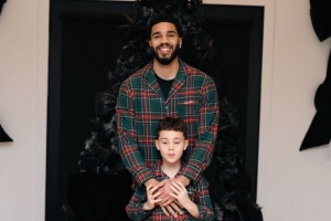 体育资讯12月26日讯 塔图姆更新社媒,晒出了父子两人穿同款家居服在圣诞树下的合照。