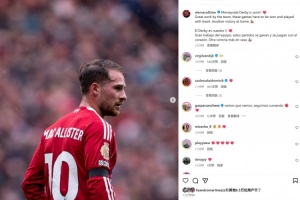 麦卡利斯特赛后在个人社媒晒出本场照片,配文写道:“默西塞德德比胜利属于我们,球队拿出了很棒的表现,这是必须要取胜,必须全力拼搏的比赛,又一场主场胜利!”